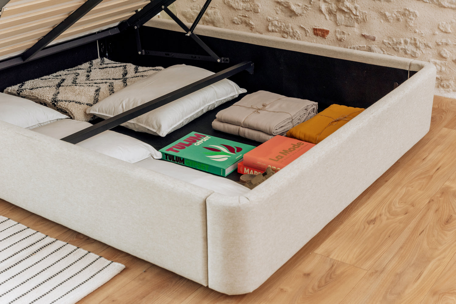 Gebruik de ruimte onder het bed op een slimme manier. Kies voor een bedbodem met ingebouwde lades of voeg opbergboxen toe om een praktische opbergruimte te creëren. Deze tip is ideaal om kussens, lakens of andere voorwerpen op te bergen die gemakkelijk verborgen kunnen worden. Leer ook hoe vaak bed verschonen om de ruimte fris en schoon te houden.