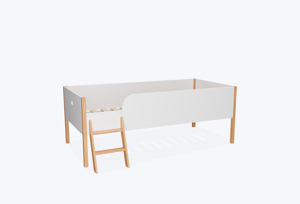 Het Nuage-bed heeft een klein laddertje aan de zijkant zodat je er makkelijk in kunt klimmen en door de geringe hoogte is het bed geschikt voor kinderen vanaf zes jaar. Je kunt ook twee (optionele) grote opbergladen aan het bed toevoegen om extra ruimte te besparen.