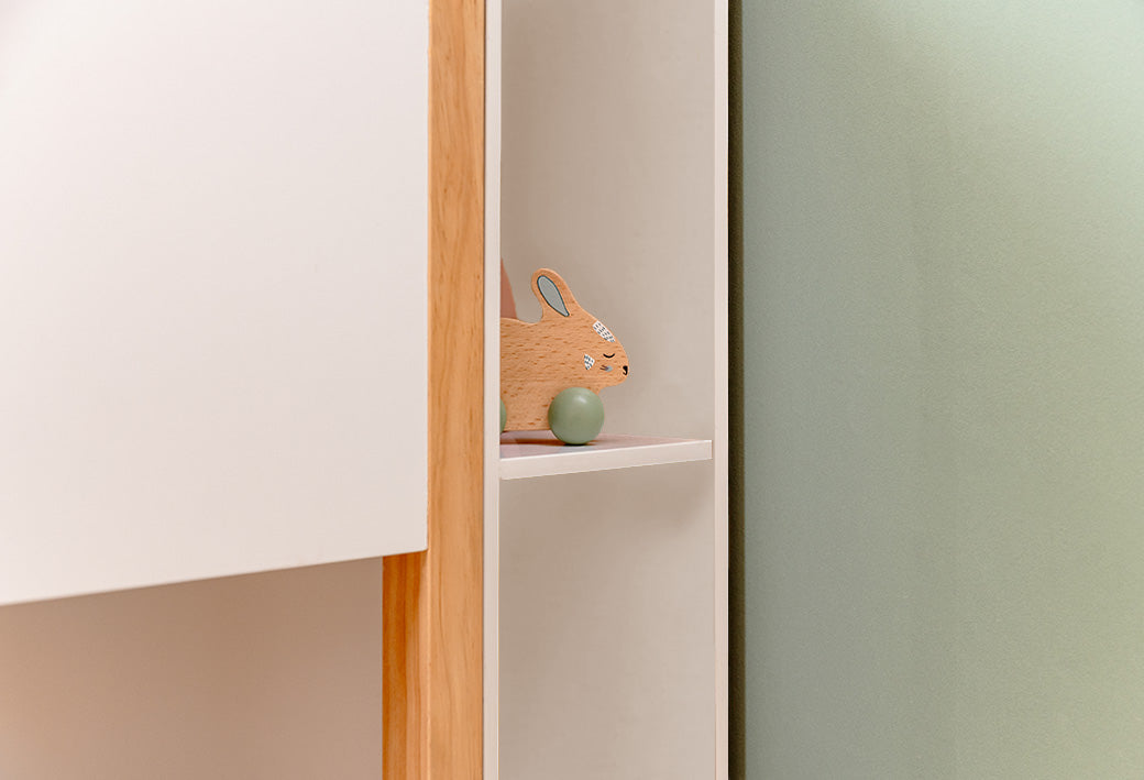 Het sobere en minimalistische design past goed bij alle soorten slaapkamers, van zowel kinderen als volwassenen. De volledig witte versie (eenpersoons) of die met houten achterwand (tweepersoons) zorgt voor een bescheiden of wat meer uitgesproken decoratie.