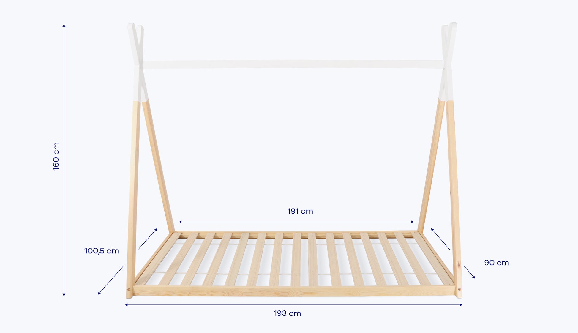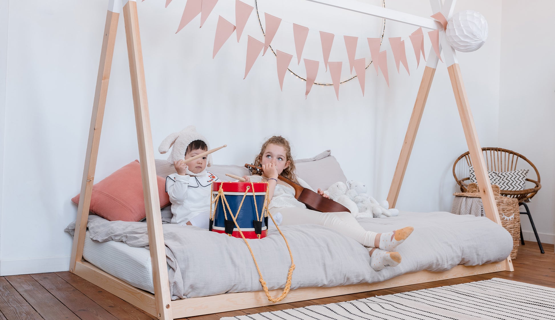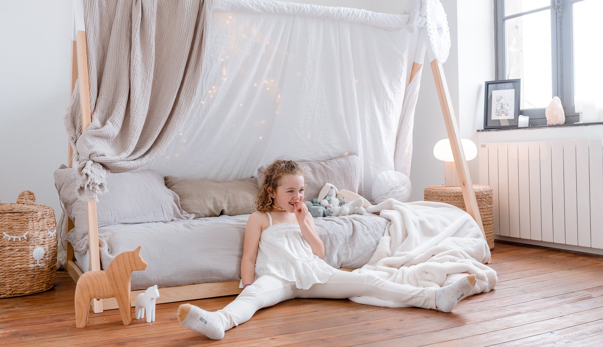 Het Pluim bed geeft de kinderkamer iets licht Boheems, met zijn massief grenenhouten frame in de vorm van een tipi en de verf op waterbasis zonder schadelijke stoffen. Door de ludieke, open vorm zal je kind het overdag als een speelterrein zien en ‘s nachts als een geruststellende cocon.
