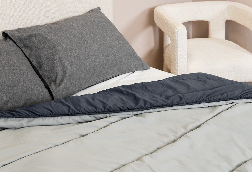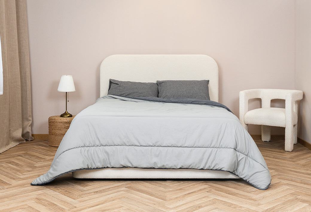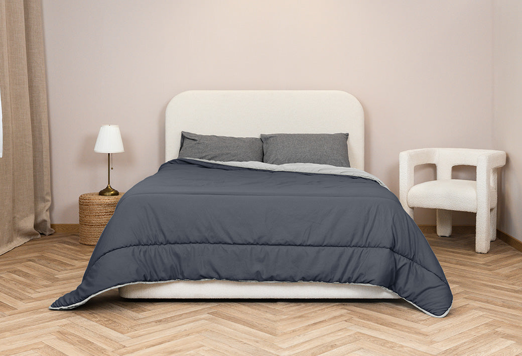 Dankzij de twee verschillende kanten kun je makkelijk een ander sfeertje creëren. Grijs voor een moderne en rustige uitstraling en blauw voor een meer frisse en levendige stijl. Eén dekbed, twee stijlen, zonder moeite.